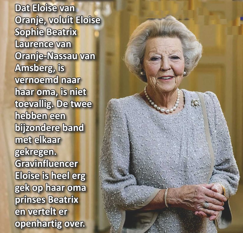 Als kersverse oma was Beatrix natuurlijk heel blij met de komst van haar eerste kleinkind Eloise, die haar werd geschonken door haar zoon prins Constantijn en zijn vrouw prinses Laurentien. Sindsdien hebben Eloise en Beatrix met de jaren een bijzondere band ontwikkeld, want Eloise was natuurlijk ook meteen het eerste kleinkind waar Beatrix op mocht passen. Dat heeft blijkbaar gezorgd voor een band voor het leven. Want nog steeds zoekt Eloise haar oma, prinses Beatrix, graag op. Net zoals bij iedere andere oma neemt haar kleinkind dan soms ook haar vriendinnetjes mee. Oma Beatrix vindt het allemaal best, maar voor haar vriendinnetjes is het vaak wel even wennen, zo ondervond Eloise. In de YouTubeserie ‘Open Kaart’ zei de gravinfluencer erover: “Ik was samen met mijn vriendinnen en we waren ook even langs mijn oma gegaan. Terwijl ik die vriendinnen echt al heel lang ken, zaten zij zelfs van: ‘Hoe moeten we zijn? Wat moeten we zeggen?’, enzo. Voor mij is het gewoon mijn oma. Ik zei: ‘Gewoon normaal.’ Zij zeiden: ‘Wat is normaal? Want het is wel gewoon anders!’ En ik ken dus mijn vriendinnen superlang en dan zitten ze wel nog steeds van… Het is wel gewoon een beetje apart, maar mijn oma, ik zie haar echt als een normale oma. Dus ik kan me gewoon niet voorstellen hoe andere mensen naar haar kijken. Ja oké, wel een beetje natuurlijk…”