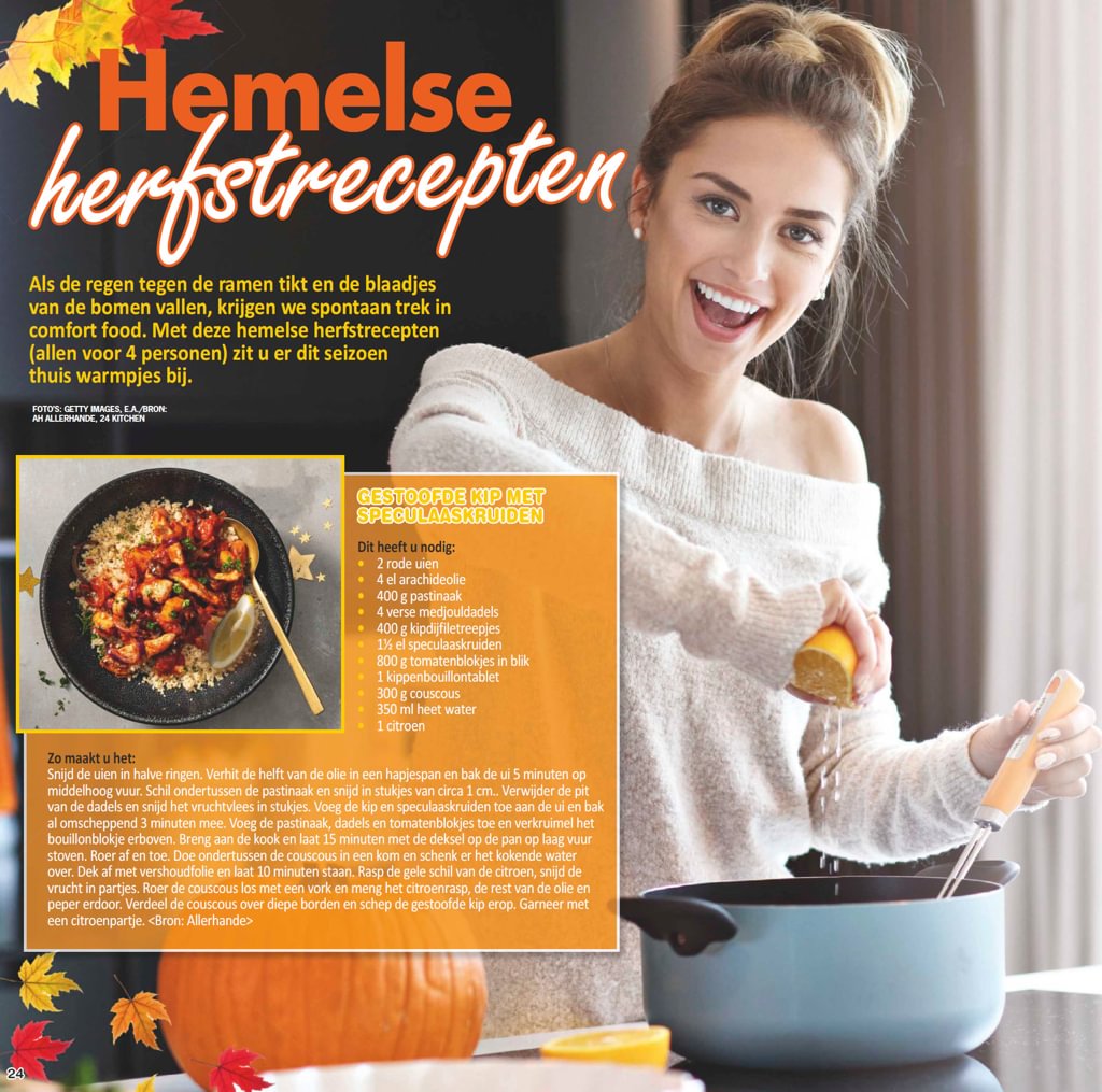 Snijd de uien in halve ringen. Verhit de helft van de olie in een hapjespan en bak de ui 5 minuten op middelhoog vuur. Schil ondertussen de pastinaak en snijd in stukjes van circa 1 cm.. Verwijder de pit van de dadels en snijd het vruchtvlees in stukjes. Voeg de kip en speculaaskruiden toe aan de ui en bak al omscheppend 3 minuten mee. Voeg de pastinaak, dadels en tomatenblokjes toe en verkruimel het bouillonblokje erboven. Breng aan de kook en laat 15 minuten met de deksel op de pan op laag vuur stoven. Roer af en toe. Doe ondertussen de couscous in een kom en schenk er het kokende water over. Dek af met vershoudfolie en laat 10 minuten staan. Rasp de gele schil van de citroen, snijd de vrucht in partjes. Roer de couscous los met een vork en meng het citroenrasp, de rest van de olie en peper erdoor. Verdeel de couscous over diepe borden en schep de gestoofde kip erop. Garneer met een citroenpartje. <Bron: Allerhande>