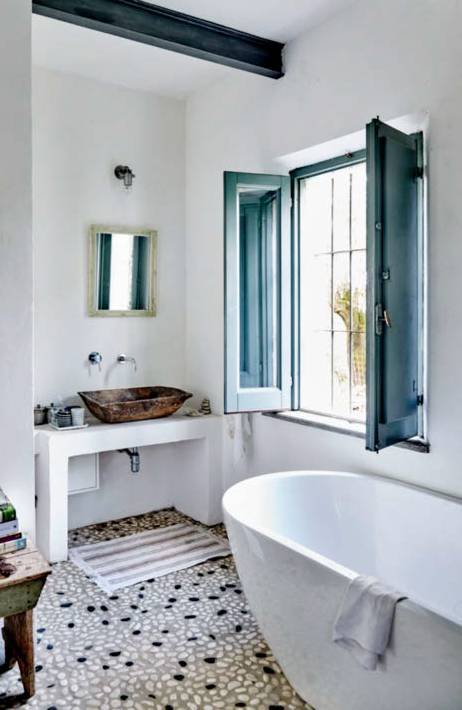 Waarom zou je je beperken tot de badkamer als je zo’n mooie kiezelvloer door het hele huis kunt leggen? Zoek wel een vloer van gladde kiezels, dan zijn je voeten je dankbaar. Je kunt de kiezels stuk voor stuk in een cementlaag aanbrengen. Of kies matjes die je in elkaar klikt en verlijmt. Info op saniweb.nl, pebble-shop.nl en stucenstone.nl.