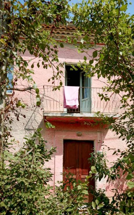 Het huis hield zijn oorspronkelijke roze kleur.
