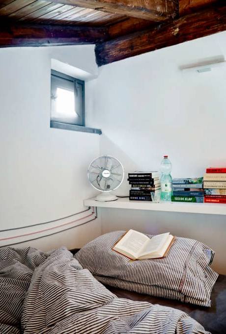 “Nadat we het koopcontract hadden ondertekend, zijn we de eerste zomer gaan kamperen in de tuin. We kochten een oude caravan en een tent en maakten kennis met het Italiaanse leven. We verkenden de buurt en gingen op zoek naar ideeën voor de kamers in het huis.”Eind december was het grootste deel van de renovatie uitgevoerd door lokale vakmensen. “Alleen de keuken was nog niet af, maar dankzij de kampeerervaring van de zomer ervoor konden we dat prima oplossen. Vanaf toen hebben we het klussen zelf opgepakt. We bouwden de keuken met hout uit de schuur en lieten een betonnen gootsteen gieten. Elke zomer boekten we een beetje vooruitgang. Hier in de provincie geven mensen weinig geld uit aan het interieur van hun huis, daardoor is er niet veel te krijgen. Voor mij is het interieur juist belangrijk en dus reden we meerdere keren vanuit Nederland hierheen met meubels in de trailer of op het dak van de auto.”